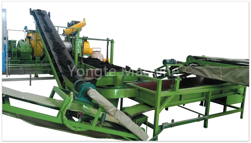 Mesin iki dirancang kanggo ngowahi ban karet sampah dadi bubuk karet sing apik liwat proses sistematis sing kalebu ekstraksi kawat baja, pemotongan ban, shredding, crushing, grinding bubuk, lan filtrasi. Nggunakake teknologi daur ulang lan pemisahan sing canggih, kanthi efisien misahake kawat baja, bubuk karet, lan serat saka ban karet sampah, kanthi kapasitas produksi 500-600 kg / jam. Wêdakakêna karet sing diproses bisa langsung dimanfaatake kanggo nggawe selang soaker karet.